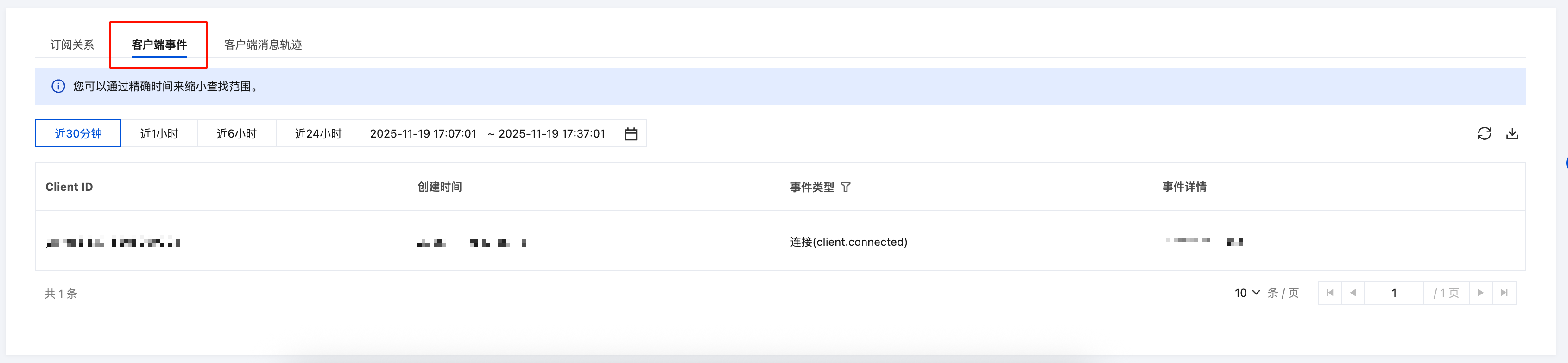 登录 MQTT 控制台 > 客户端管理 > 根据Client ID搜索客户端,点击查看详情。