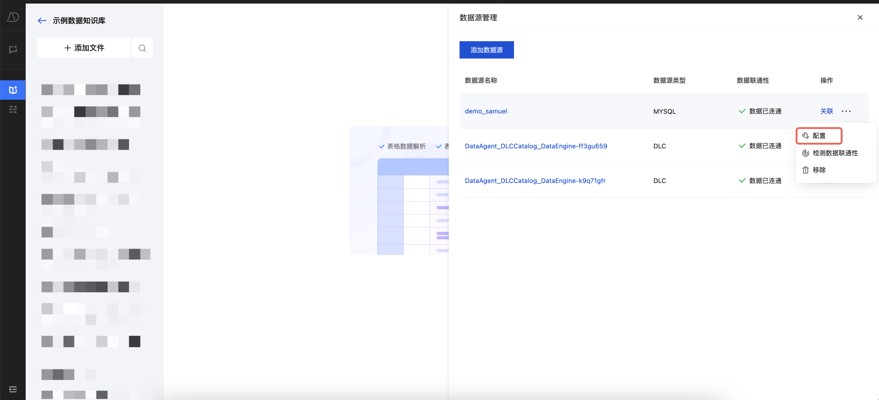 您可单击数据源操作中的配置。对数据源的 MCP 服务配置进行修改。