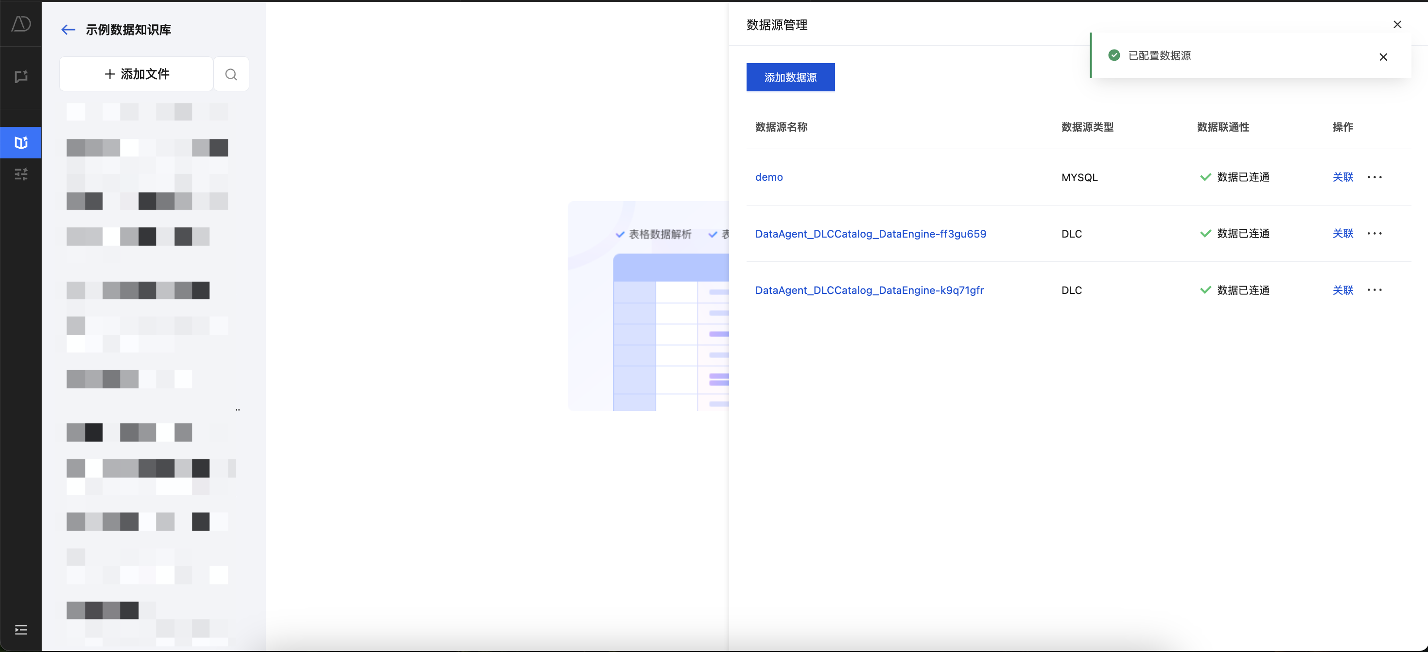 数据源创建成功后,才可使用该数据源进行对话问答。