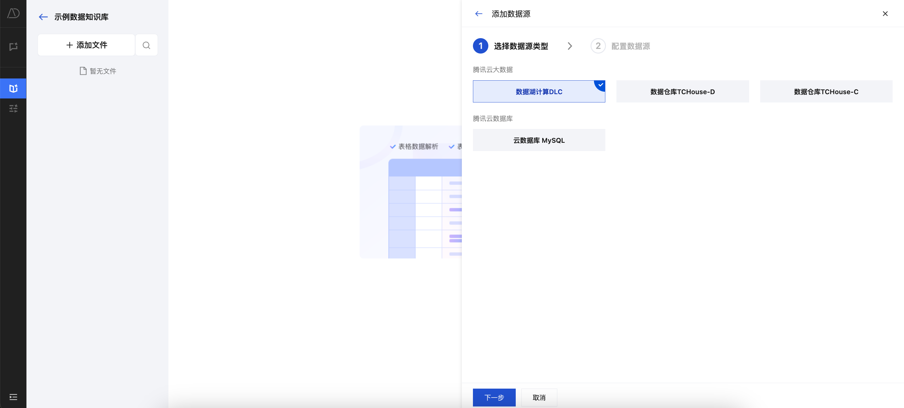 当前支持添加腾讯云数据湖计算DLC、TCHouse-D、TCHouse-C、腾讯云数据库 MySQL为数据源,更多其他数据源功能敬请期待。