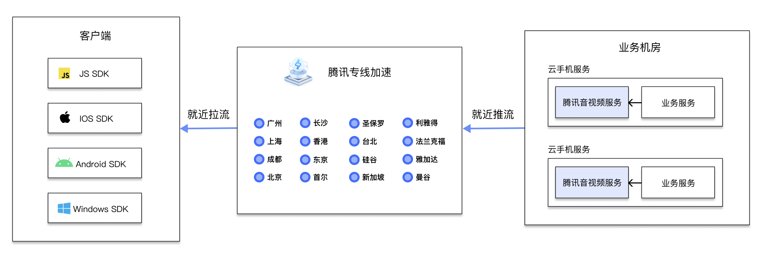 多云统一管理:无论云手机资源部署在腾讯云、客户自有机房还是其他云厂商,均可通过本方案实现音视频串流能力的统一纳管,为企业提供一致、稳定、高清的远程访问体验,简化运维复杂度。