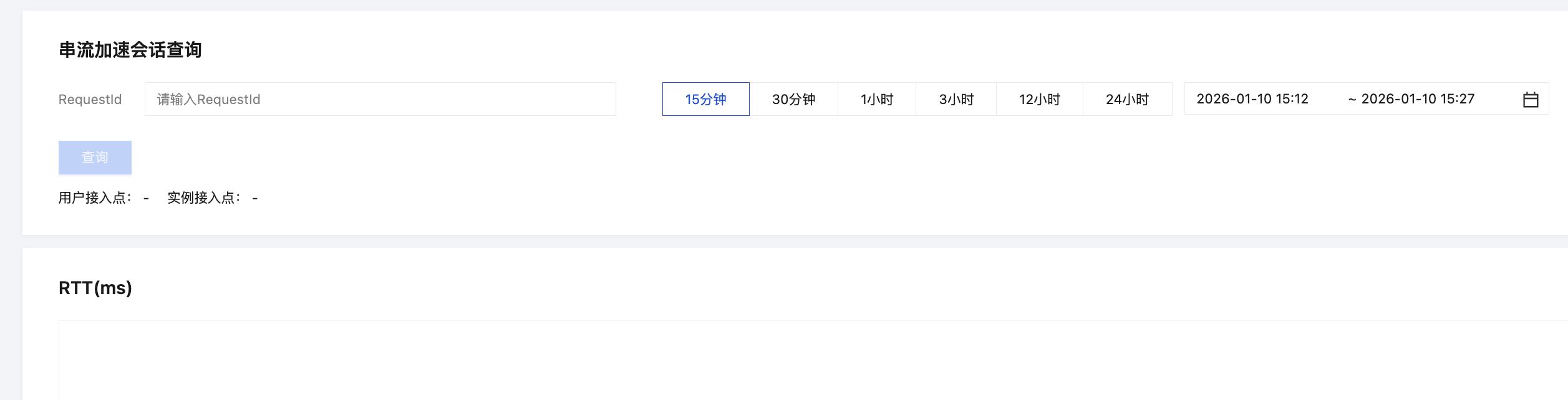 控制台的串流加速会话查询页面支持通过实例 ID 和 RequestId 查询会话记录。该功能可展示会话连接中的各项数据指标,为运行问题排查提供有效支持。