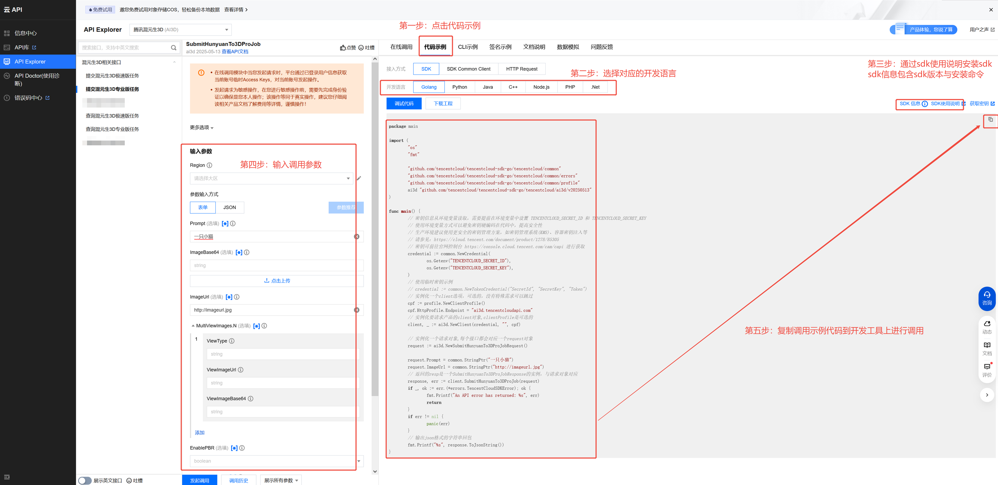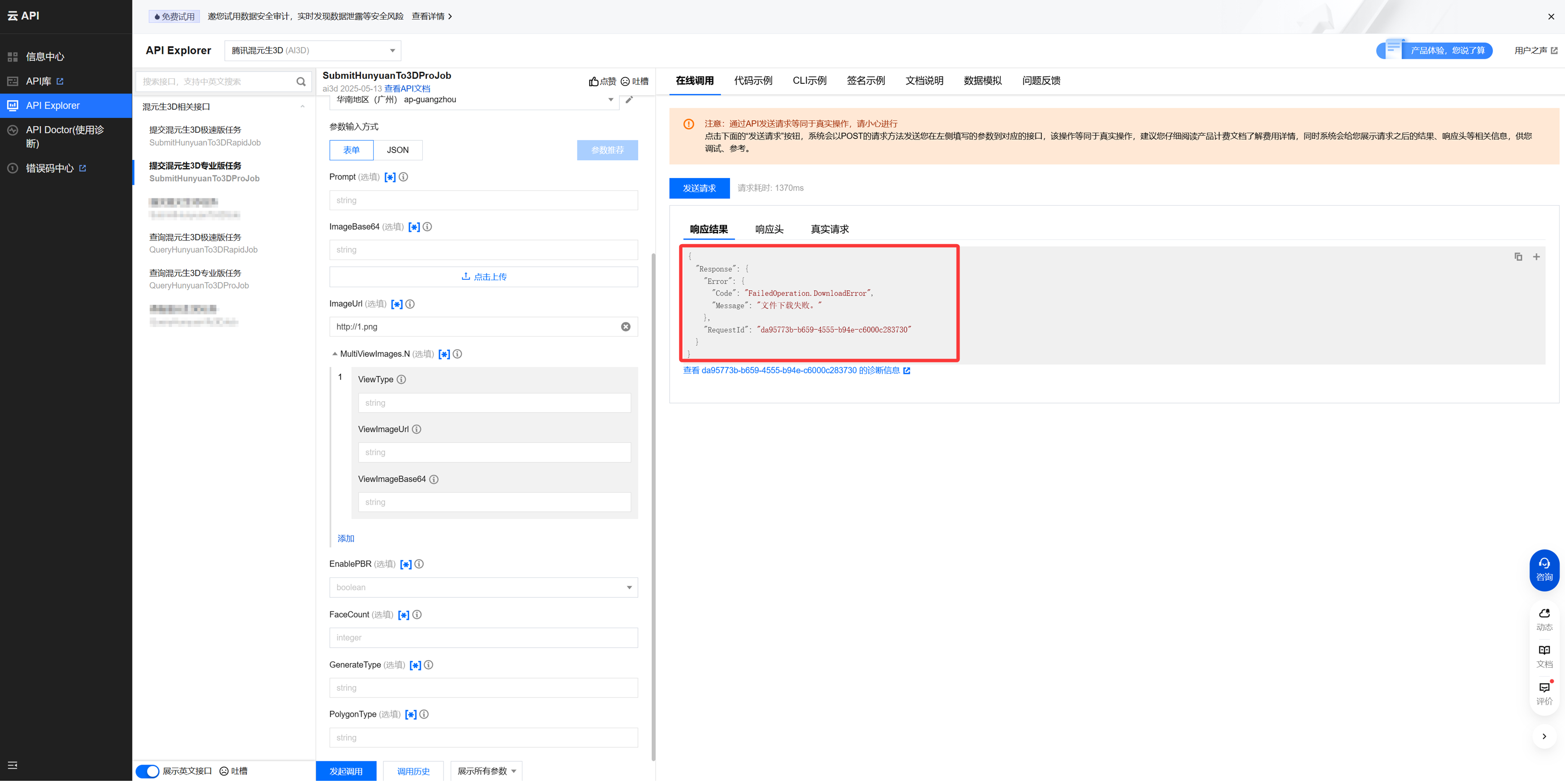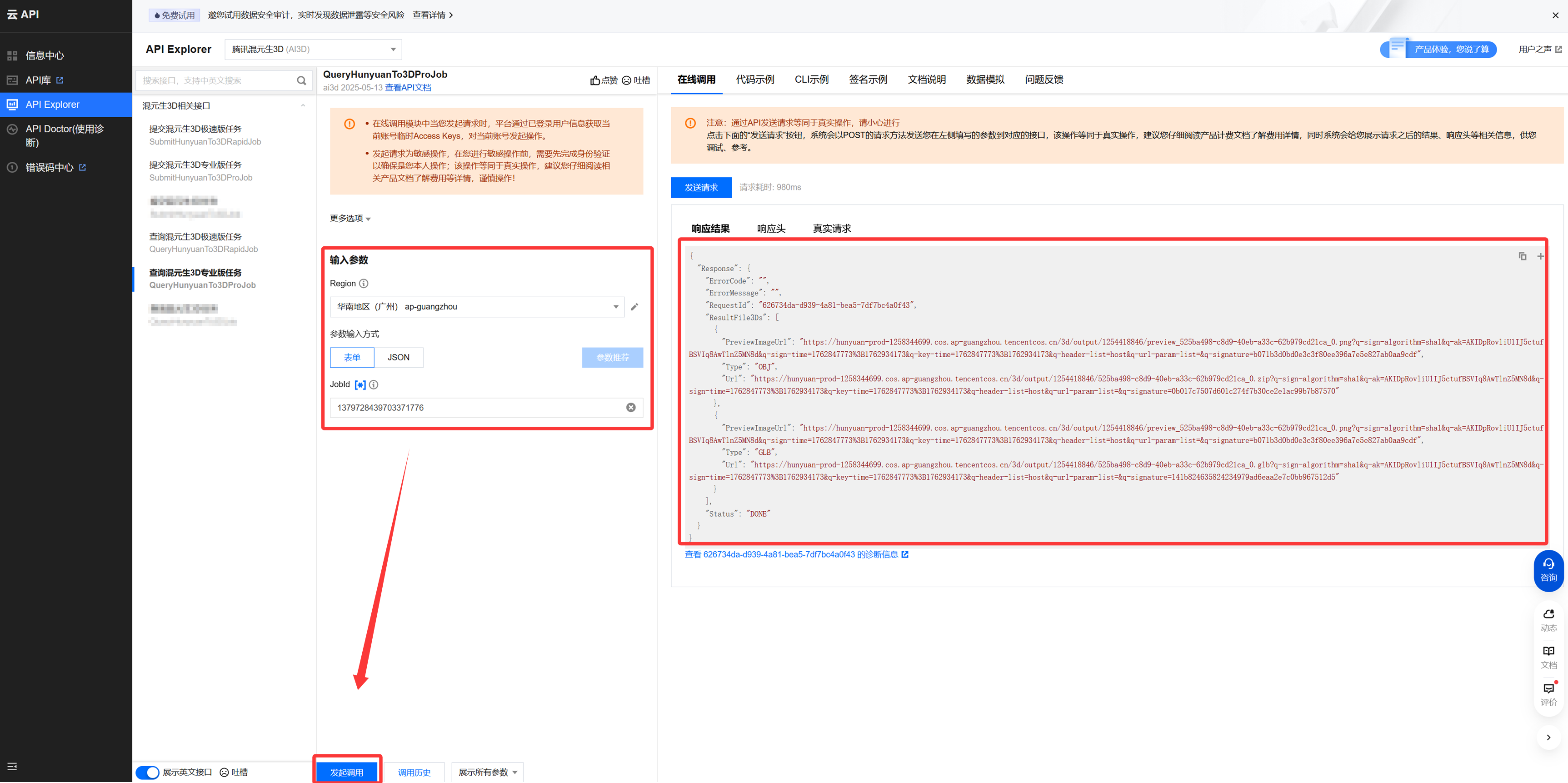 本文将为您介绍如何使用 API 3.0 Explorer 在线调试腾讯混元生3D 相关接口。
