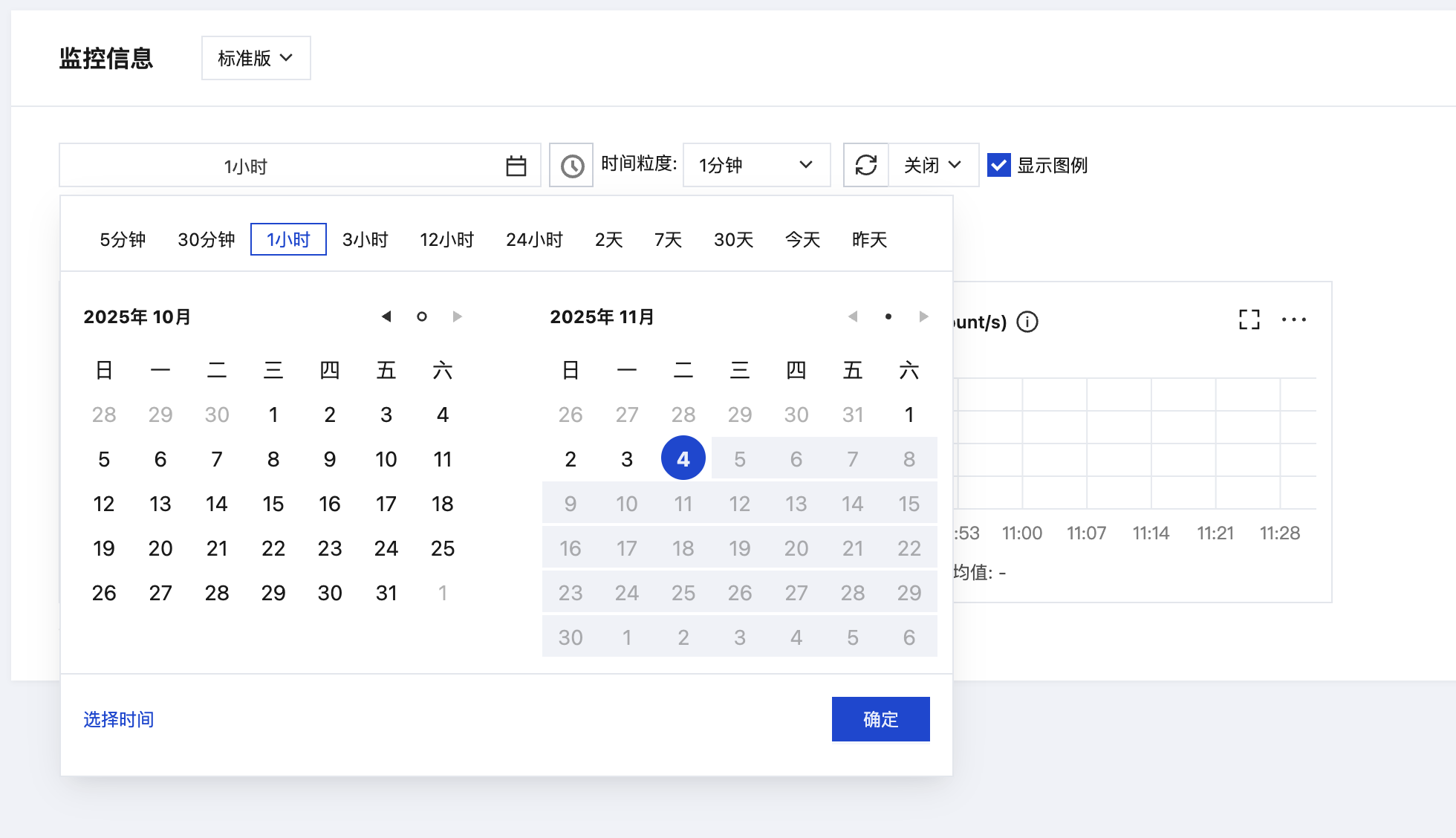 3. 单击时间粒度,按需选择 API 指标的统计周期。