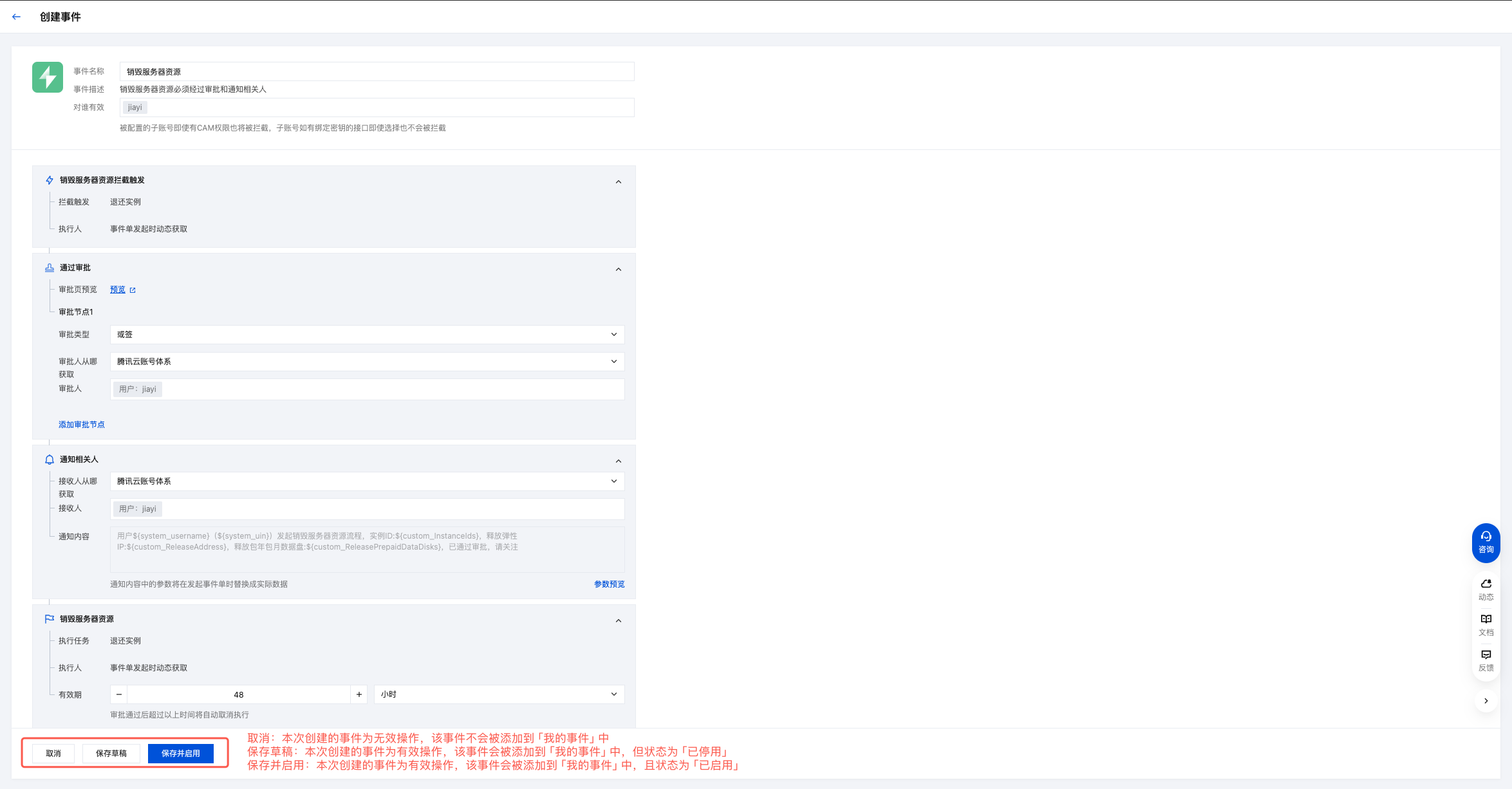 ,进入事件创建页面。