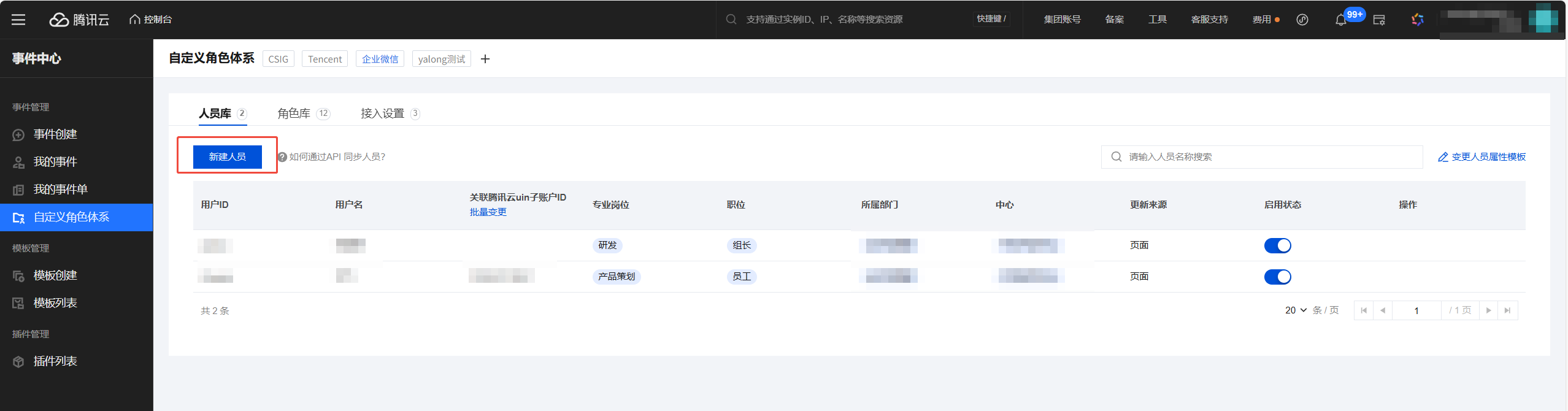 关联腾讯云 UIN 子账号 ID:非必填字段,可填写自定义人员对应的腾讯云 UIN 账号;