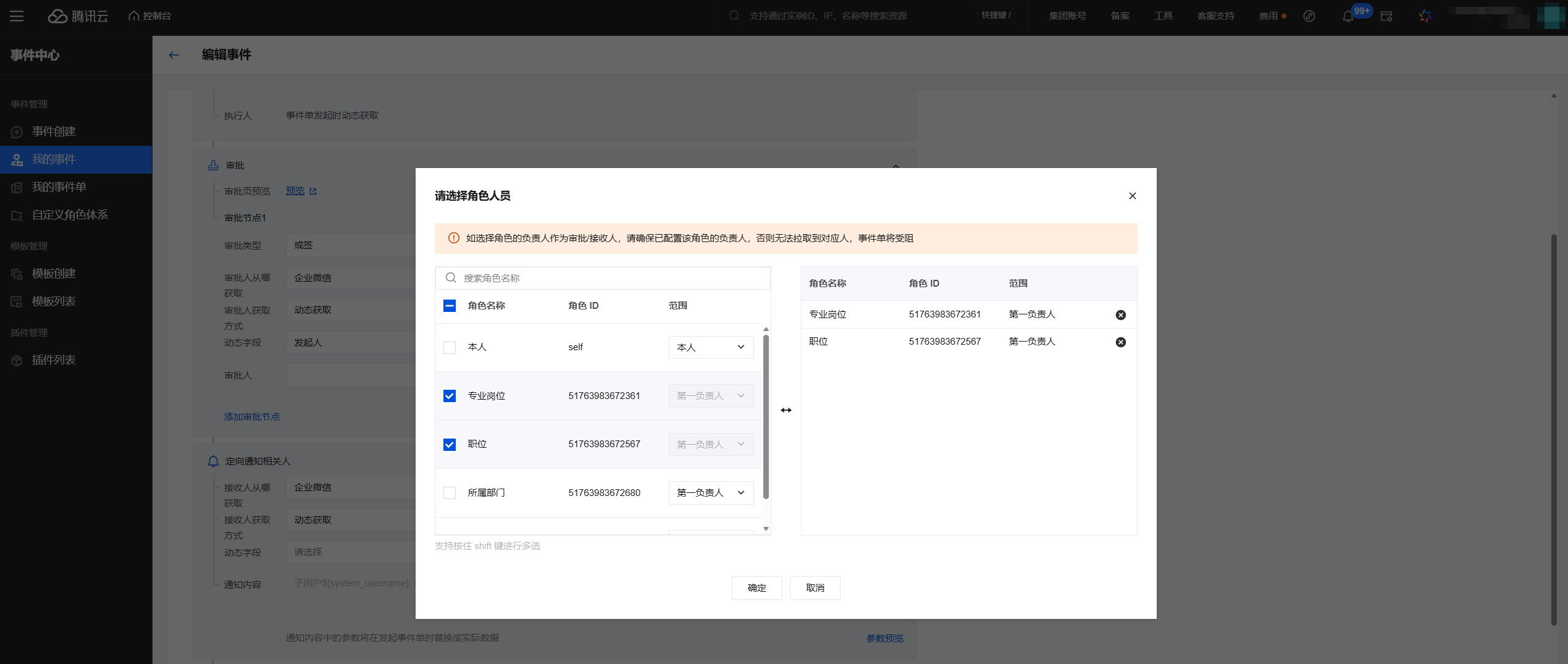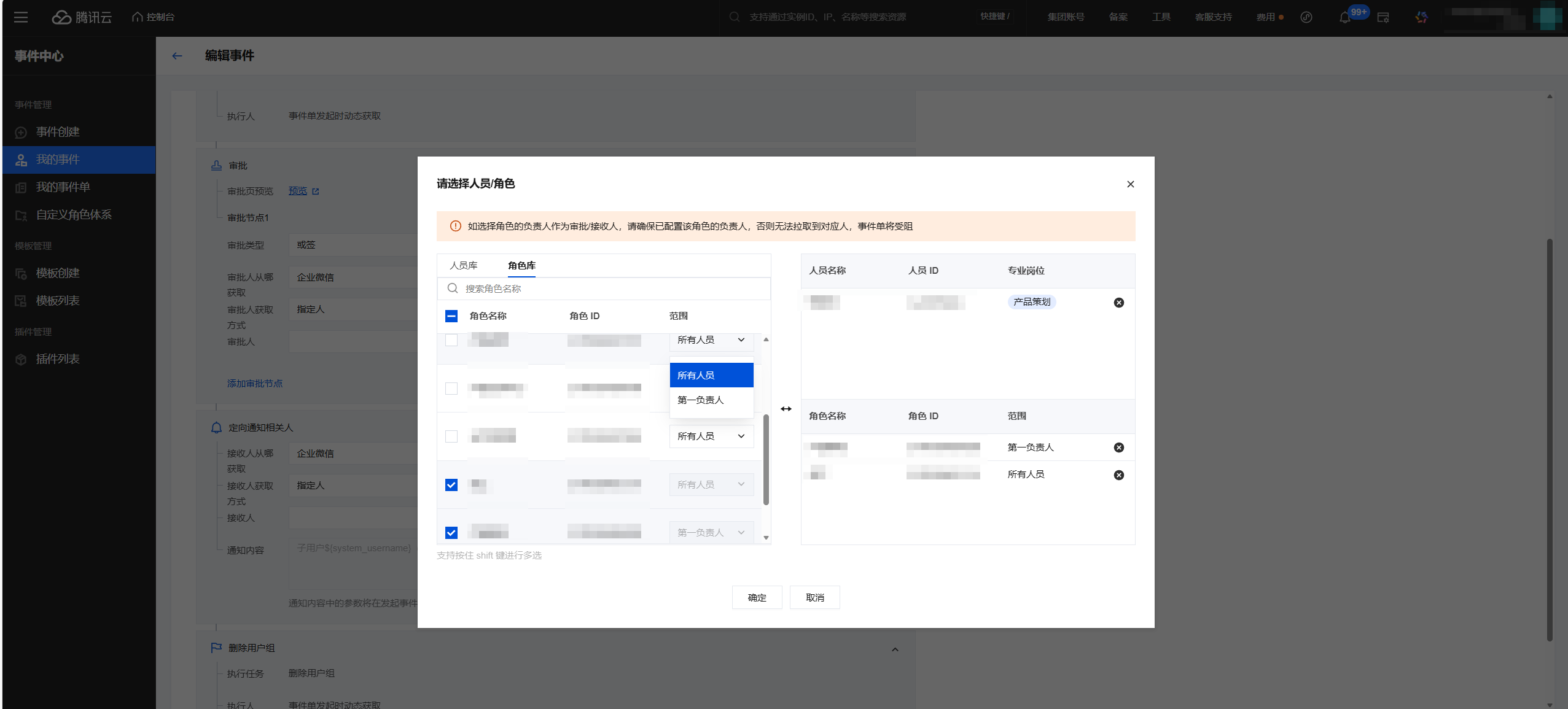 谁能选择角色:拥有事件编辑权限的人则可以在事件中选择处于启用状态的角色和人员。