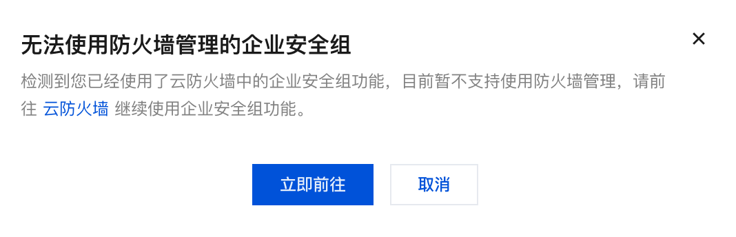 若用户已经使用了云防火墙的企业安全组,则不可使用防火墙管理。单击
