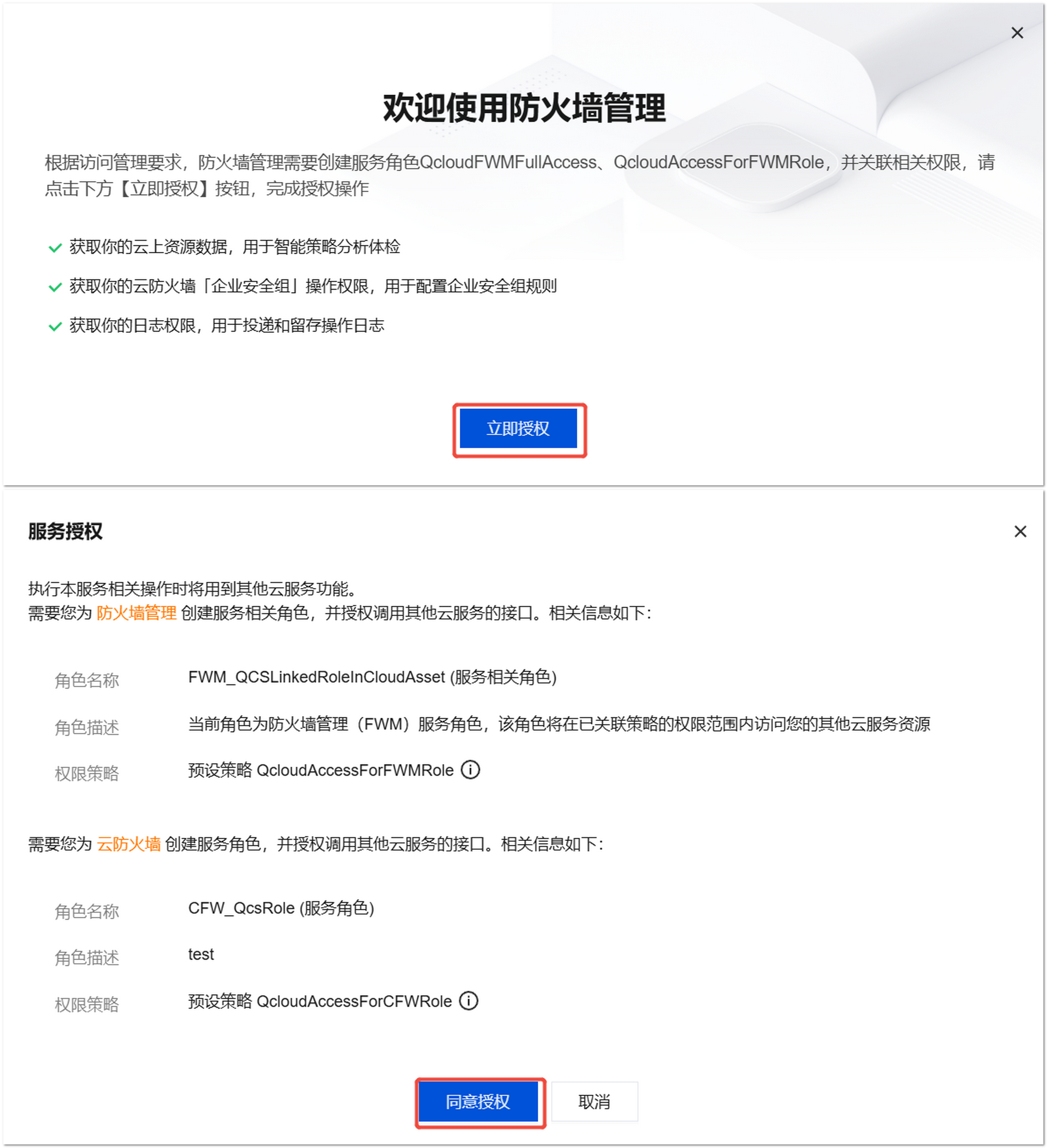 授权成功后,系统将自动跳转至防火墙管理的