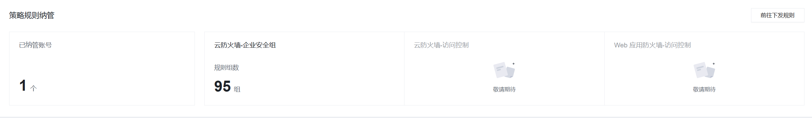 查看当前已关联纳管的账号总数,以及各个安全产品下的规则组数量。