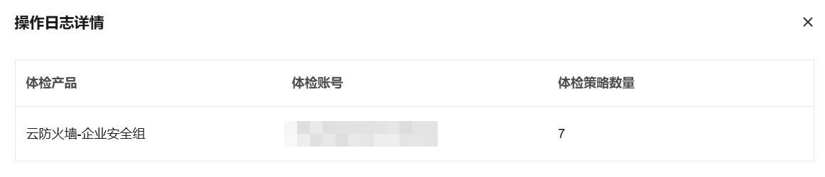 查看开始体检行为的日志详情时,可查看进行体检的产品信息、账号信息以及体检策略数量。