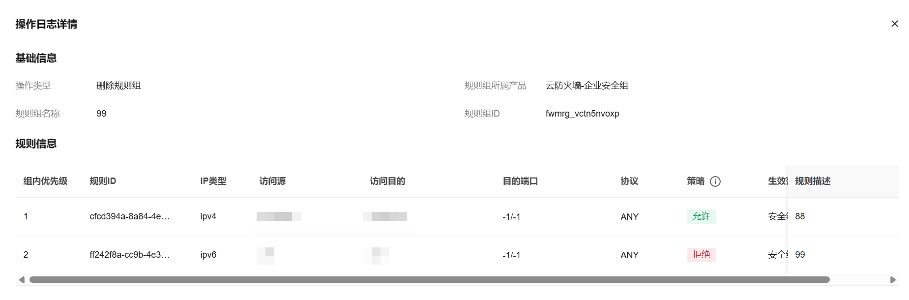 5. 单击目标记录操作列的详情,即可查看该条操作日志的详细信息。