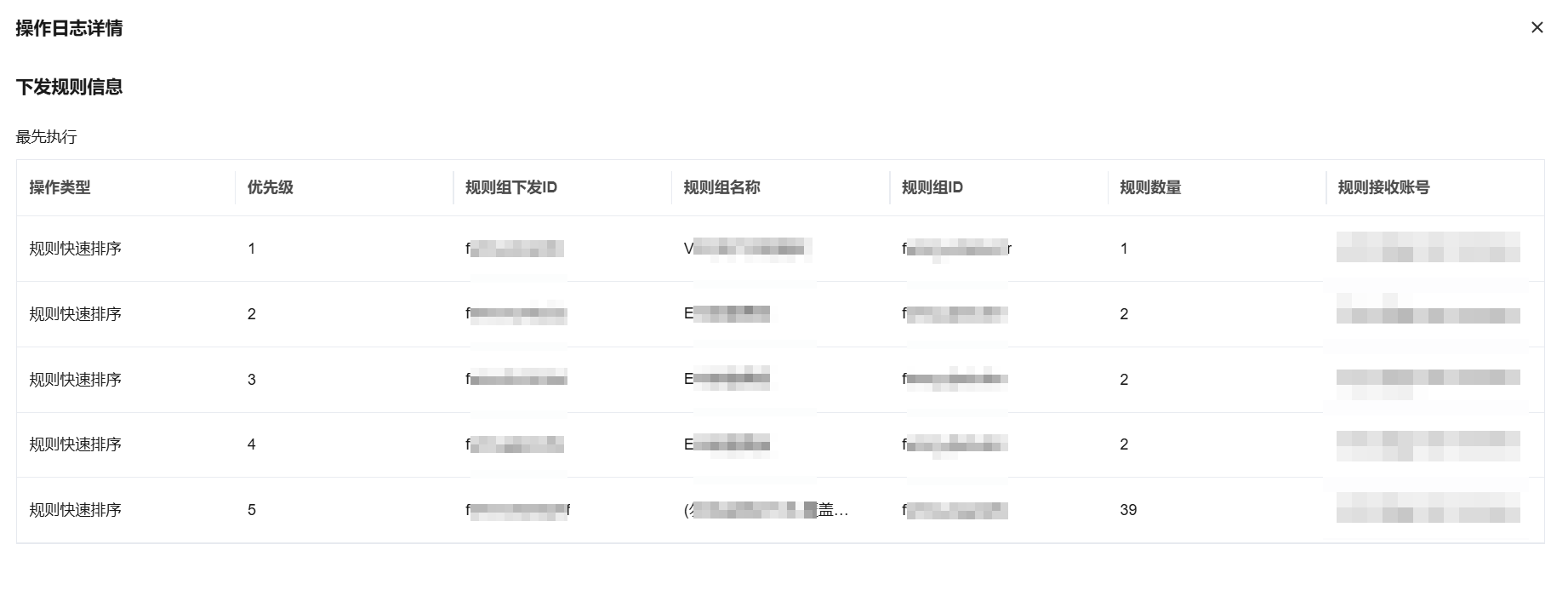 查看规则下发管理模块的日志详情时,可查看相关下发规则的具体信息。