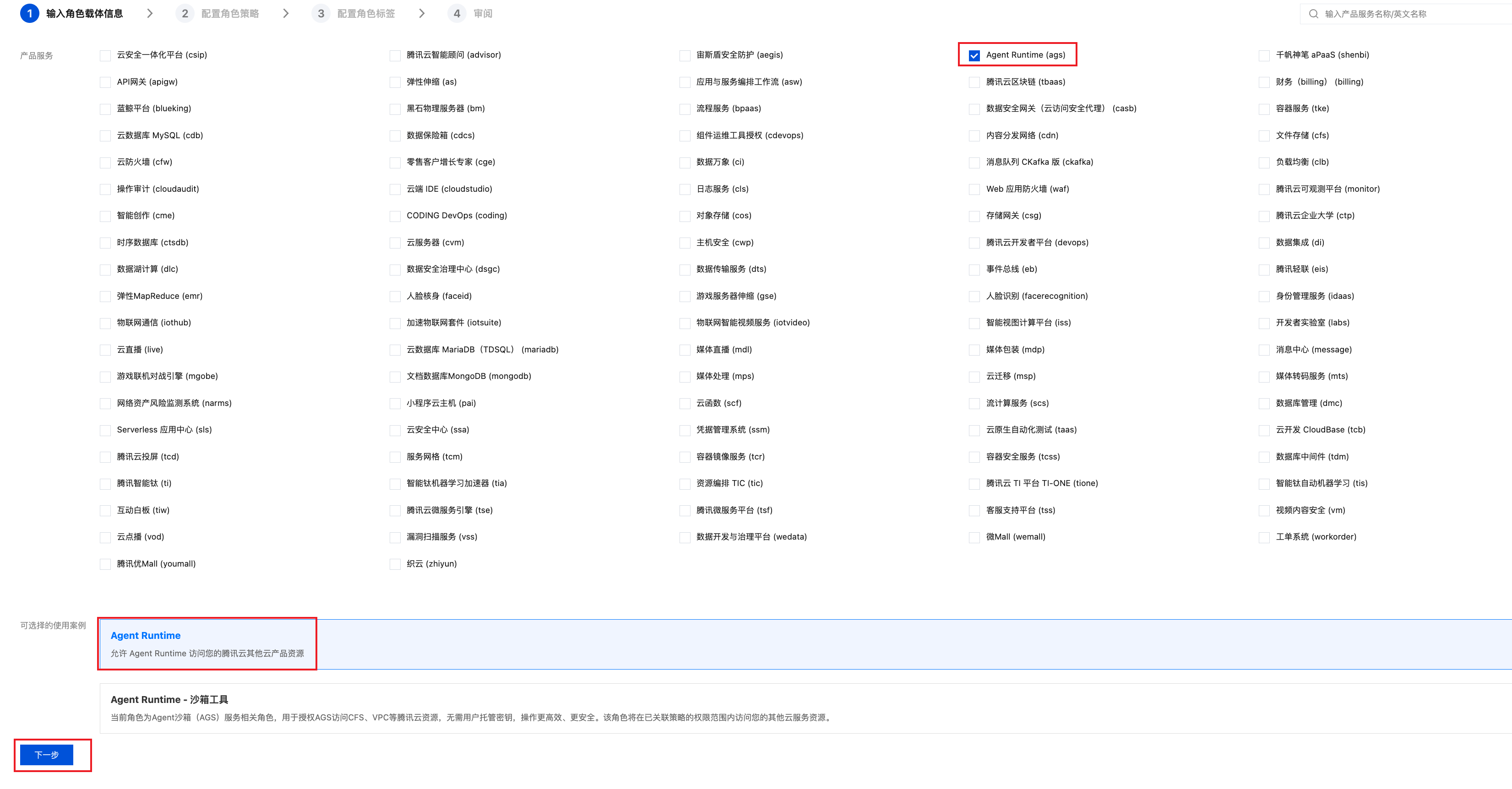 3. 创建以 Agent Runtime 为角色载体的角色。