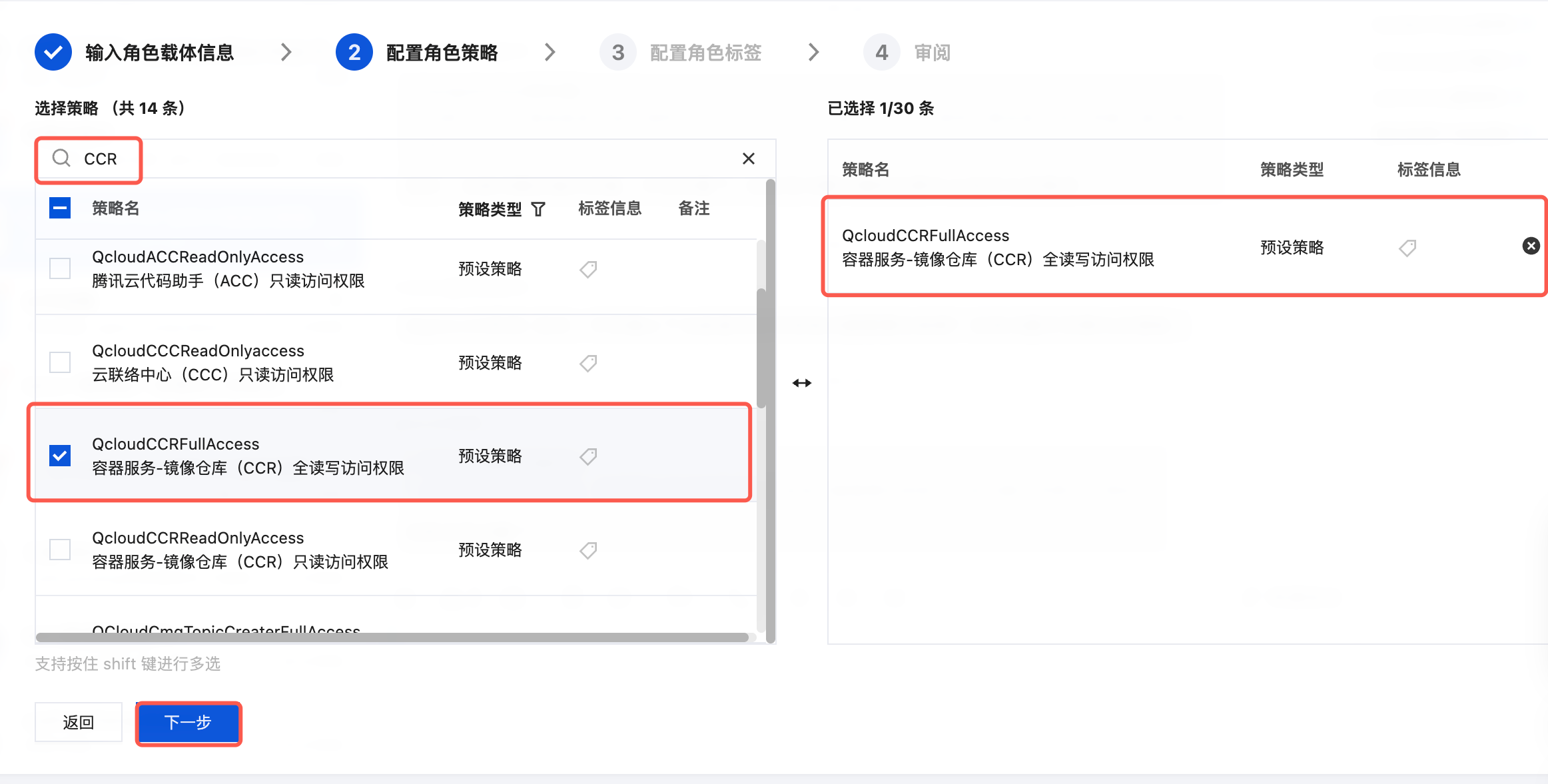 3.2 若使用容器镜像服务个人版(CCR),授予 CCR 权限 。