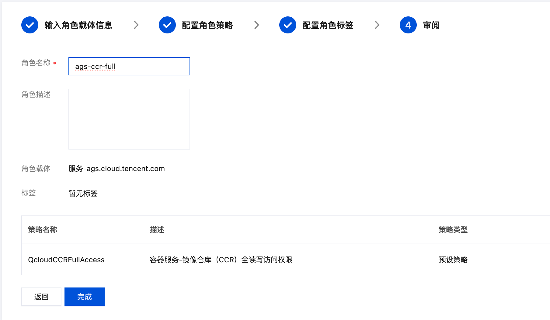 请记住此处您填写的角色名称,该名称将在后续步骤中使用。