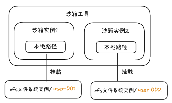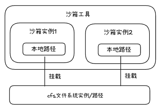 Agent 沙箱服务支持同一沙箱工具下的所有实例挂载相同的 CFS 路径,以满足数据与文件持久化存储和共享的需求。