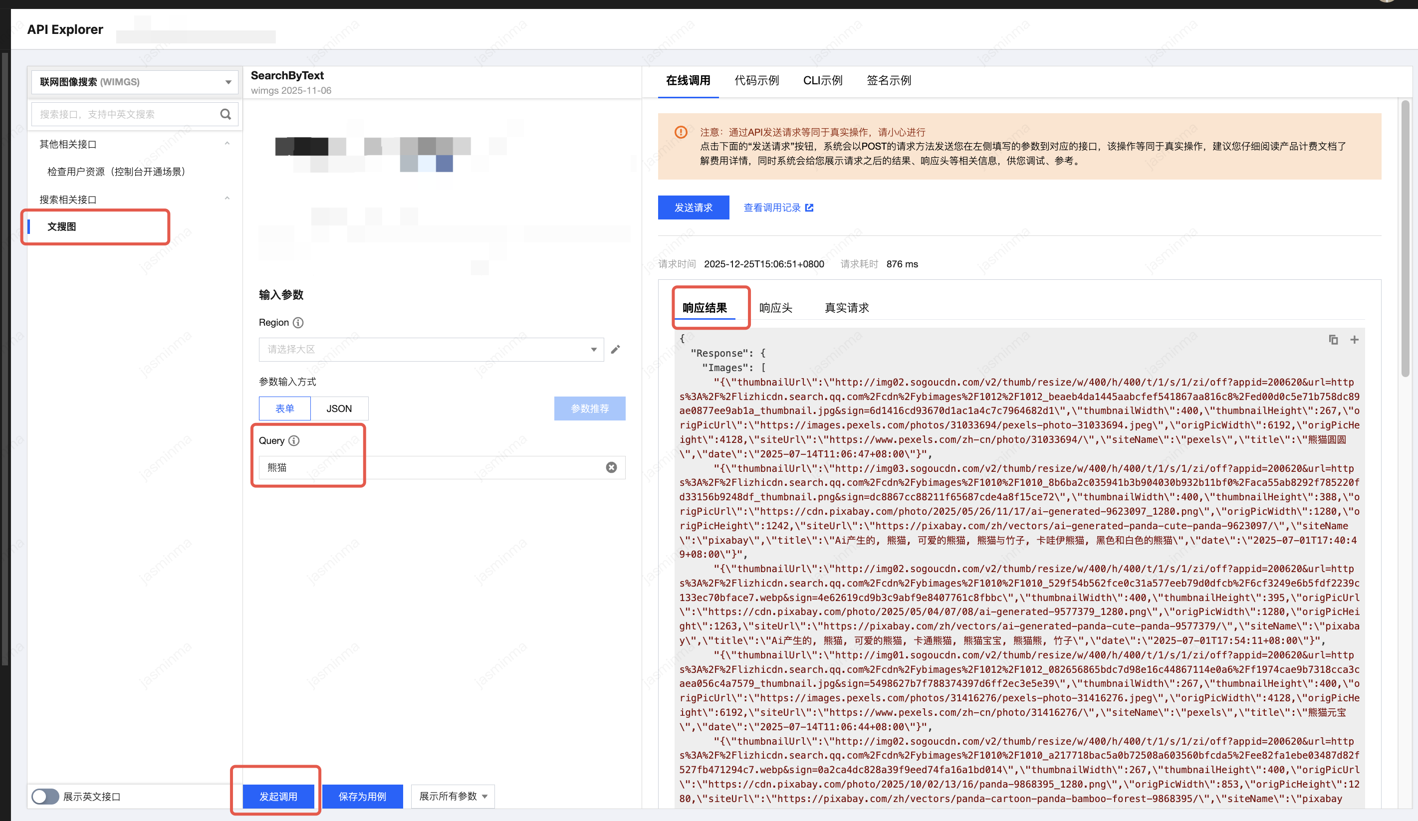 输入参数在 API 3.0 Explorer 界面的“文档说明”选项卡中可以查看对应接口输入参数的具体含义。
