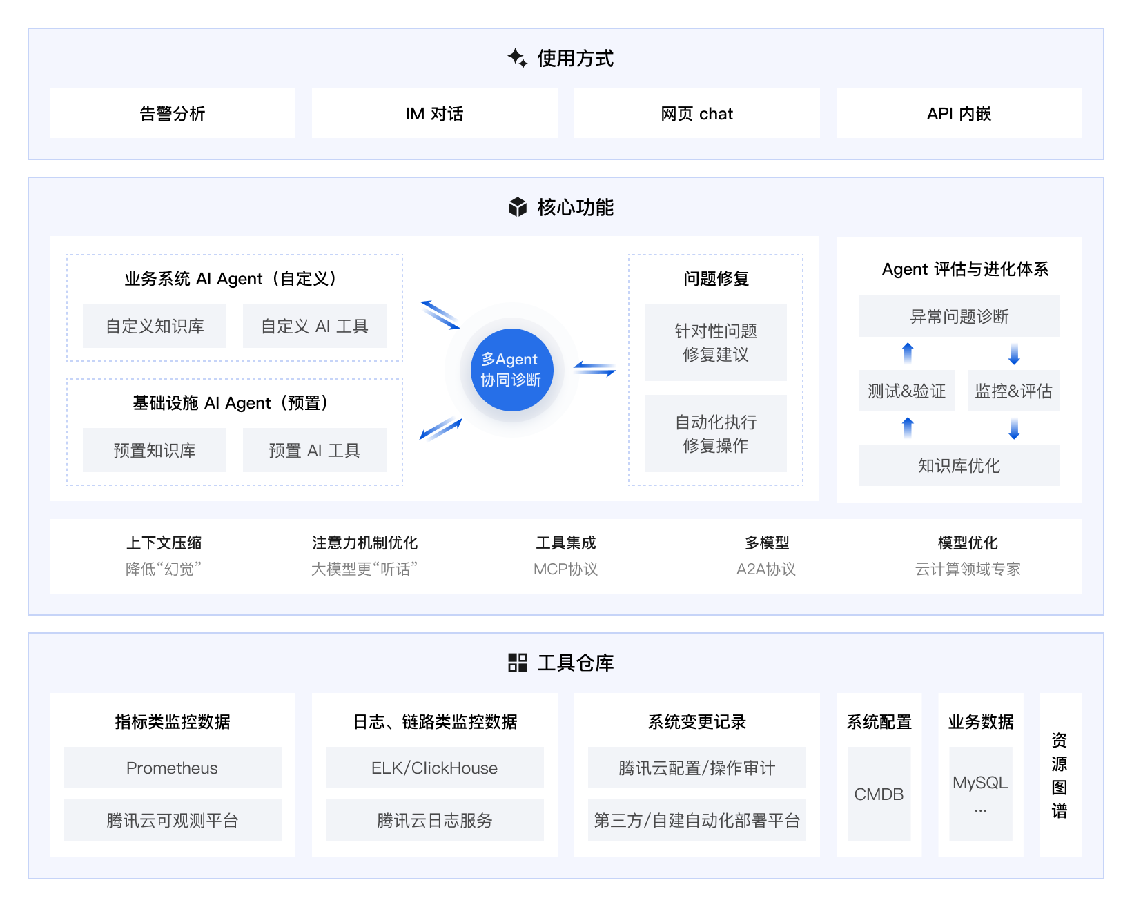 工具仓库:可通过 MCP 协议对接各类运维监控数据,与企业已有运维监控平台深度集成。