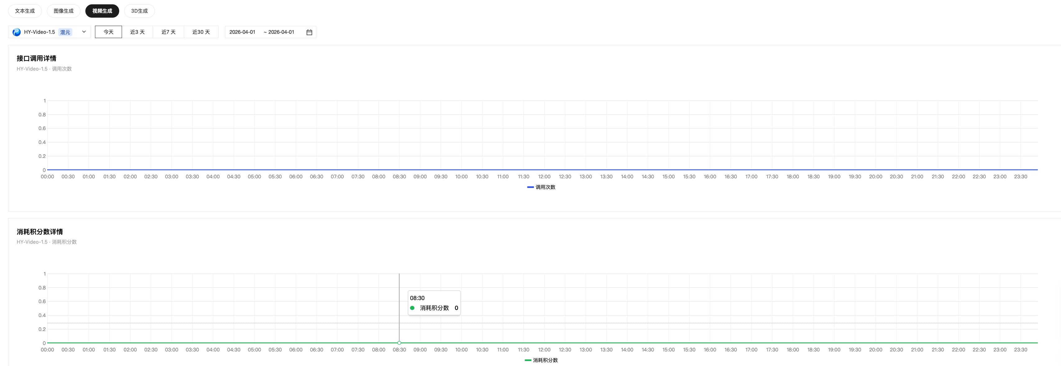 消耗积分数(仅视频生成、3D 生成提供) | 每个时间点的积分消耗数。 |