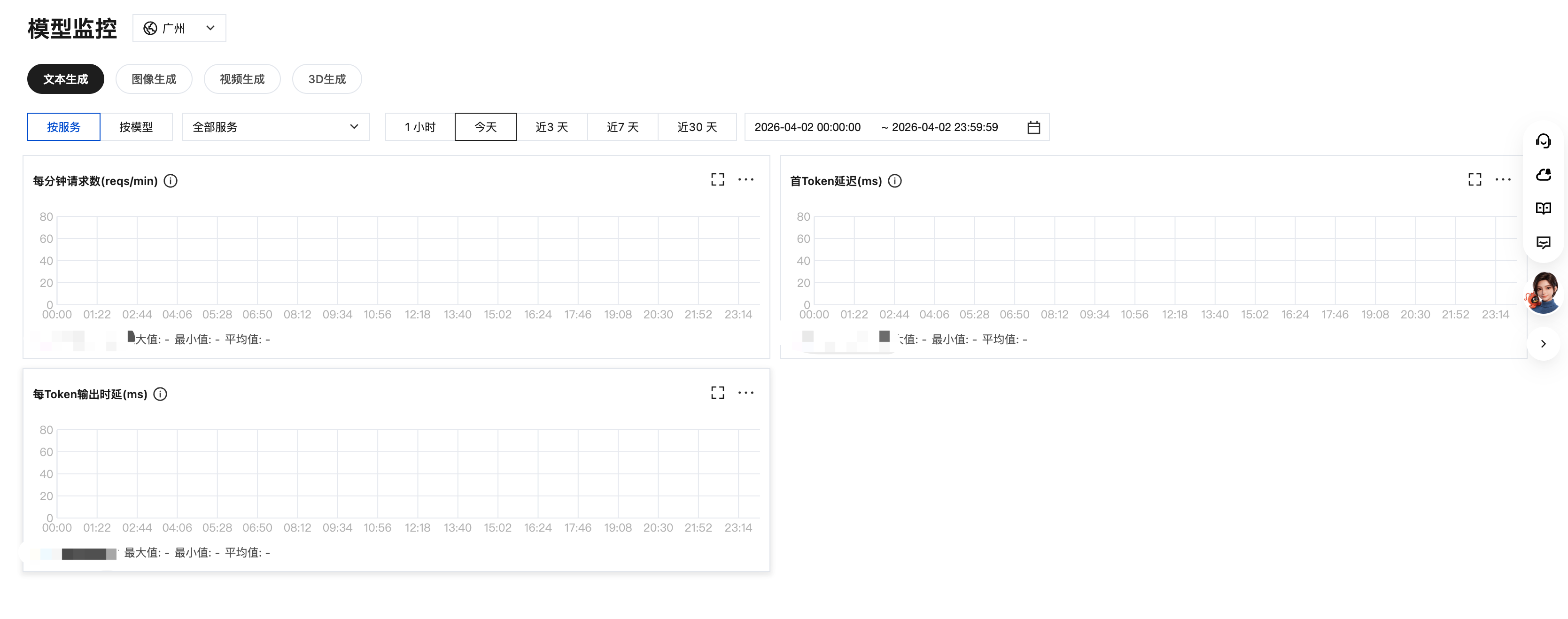 3D 生成 | 3D 生成模型的调用量、并发量等指标。 |