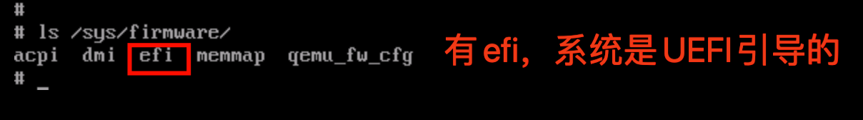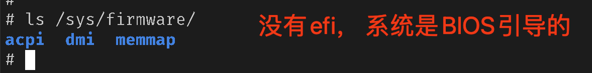 目录下面的内容来判断当前系统的引导方式,如果/sys/firmware