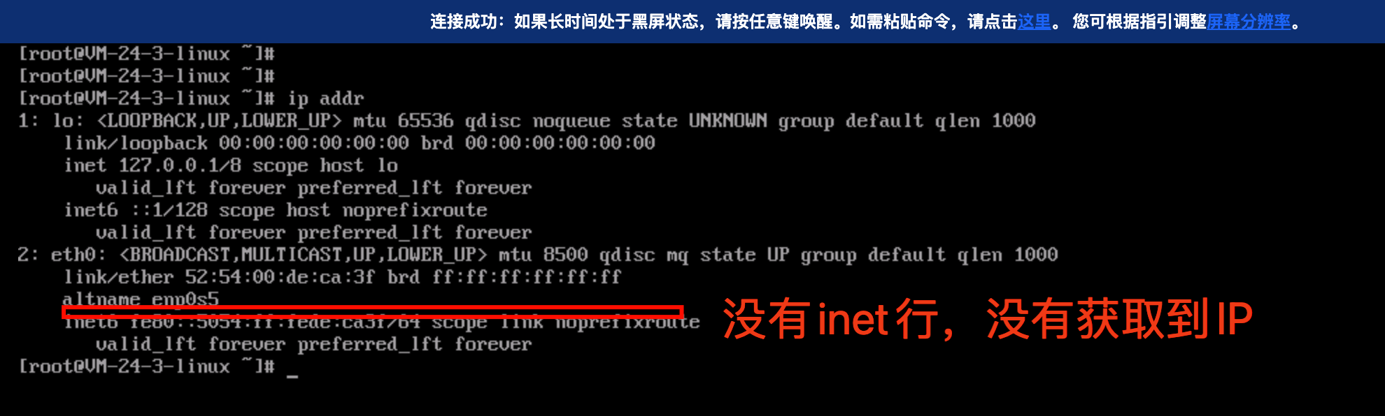 输出的结果中 eth 网卡没有 IP 地址。