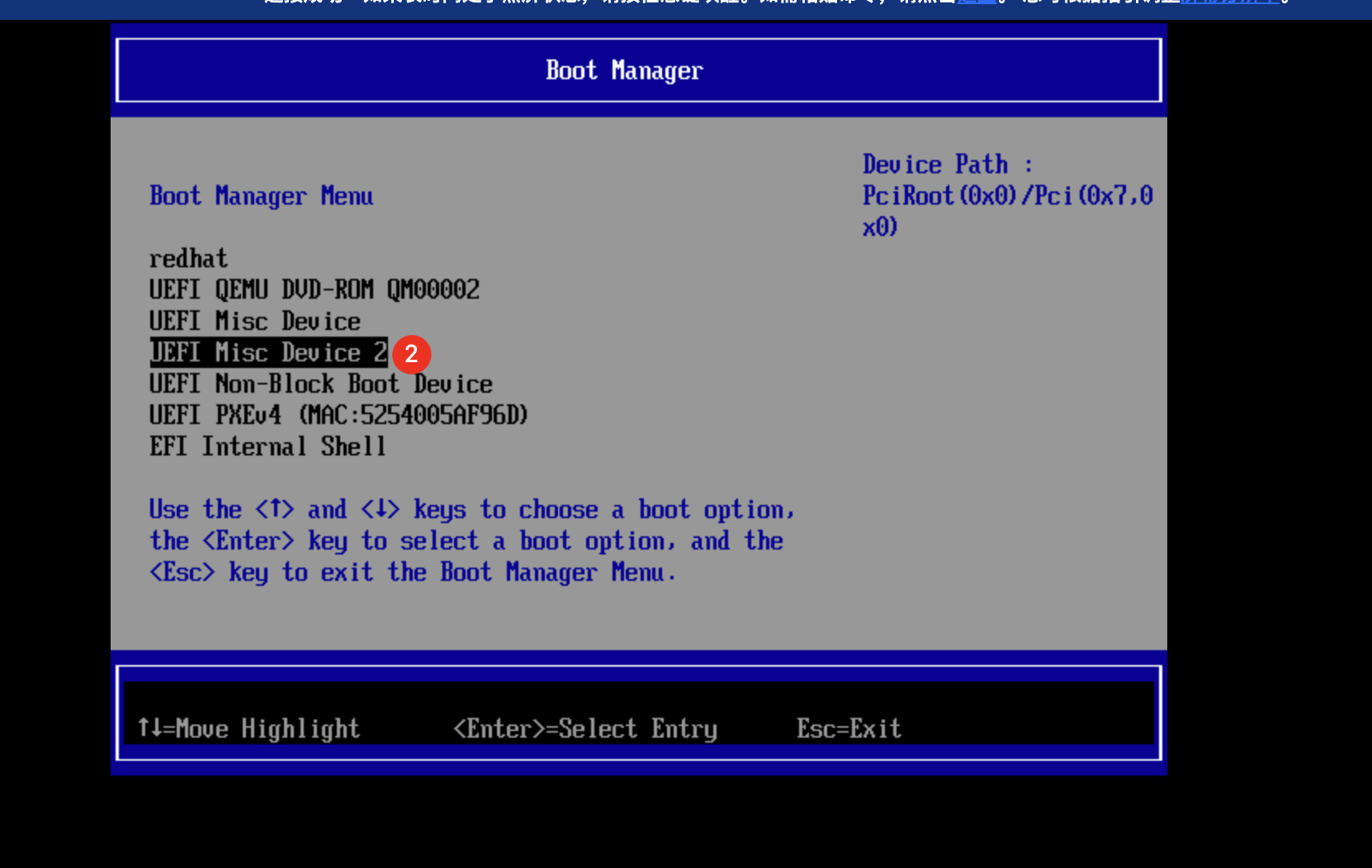 3. 选择从 UEFI Misc Device 2 启动(Device 2 表示第二个磁盘,也就是数据盘)。
