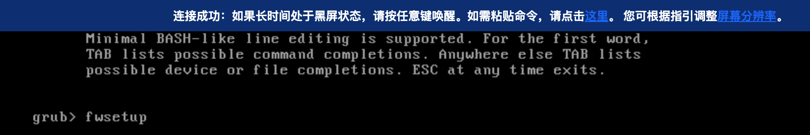 键进入 grub cmdline,在 grub 界面输入fwsetup