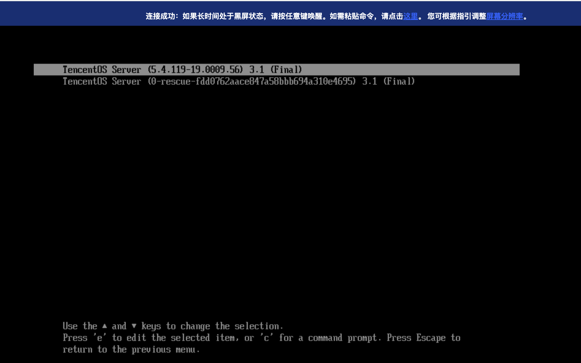1. 如果是 BIOS 引导的实例(使用 TencentOS Server 3.1 (TK4) 镜像),重启后进入 grub 界面。