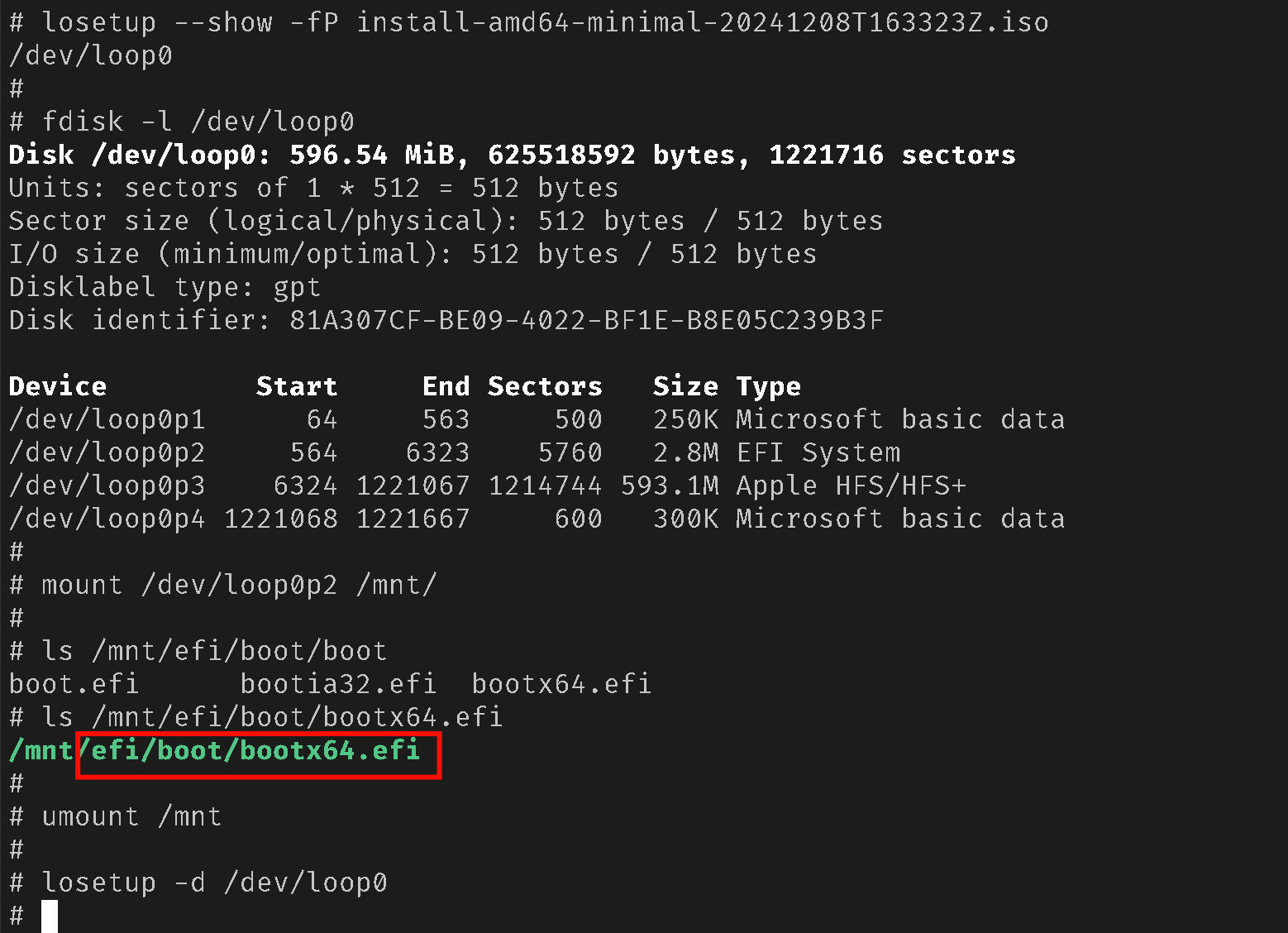 文件需要存储在 FAT 格式的 UEFI 引导分区中或者存储在 ISO 文件系统中。下面提供一种供参考的检查方式: