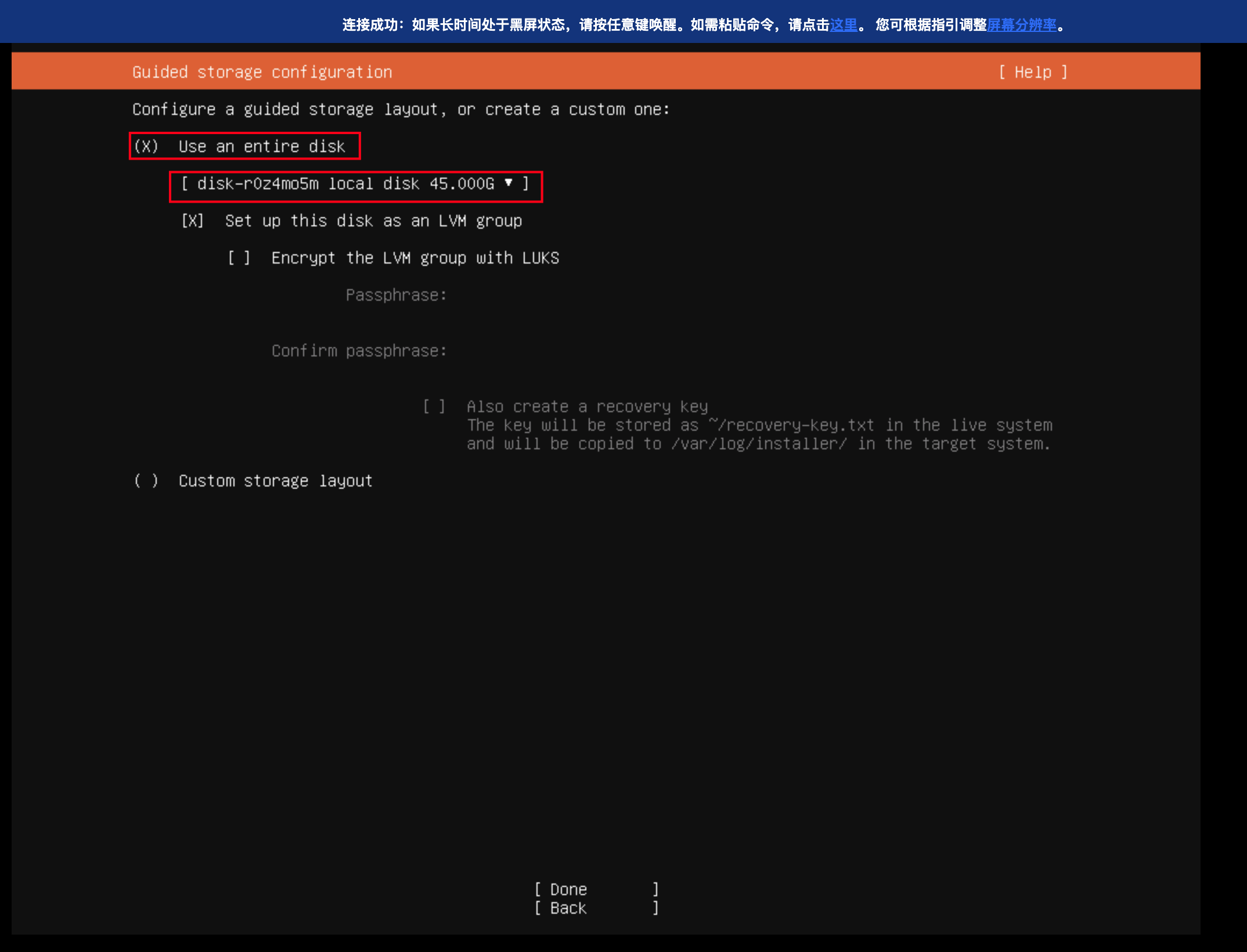 系统盘需要大于发行版推荐的磁盘大小,且系统盘需要有足够的空间,用于在后续步骤下载存储 ISO 镜像。