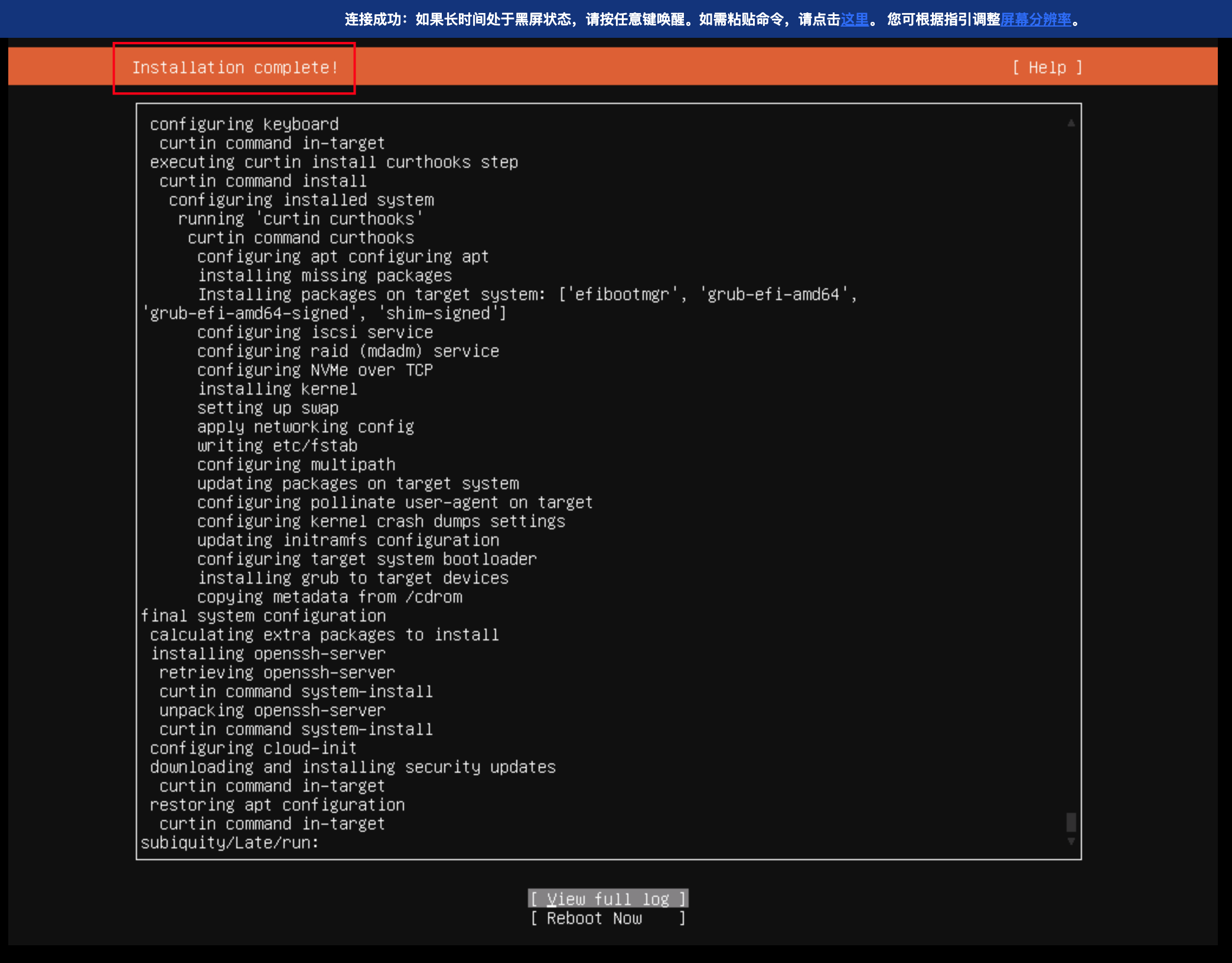 6. 系统安装完成后,重启实例。