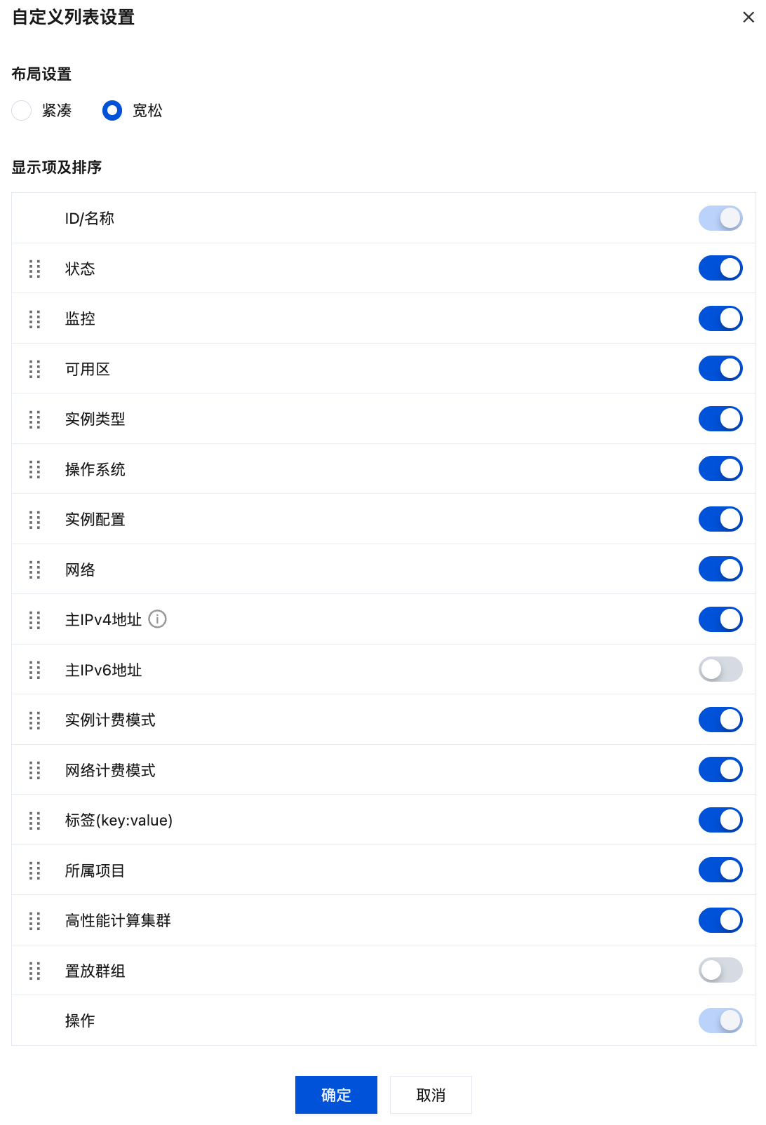 在该页面中,您可以查看到的信息操作包括:ID/名称、状态、监控、可用区、实例类型、操作系统、实例配置、网络、主IPv4地址、主IPv6地址、实例计费模式、网络计费模式、标签以及所属项目等。