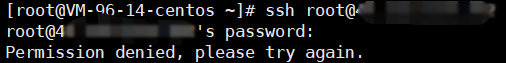 且使用 SSH 远程登录时,会出现报错信息 “Permission denied,please try again.”。如下图所示: