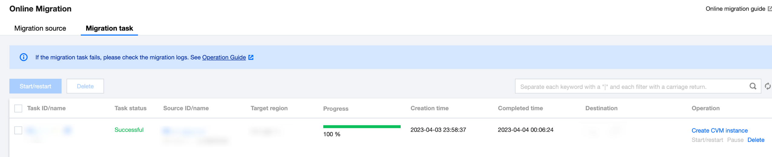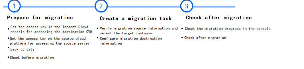 If the migration destination is a CVM, the destination CVM enters migration mode after the migration starts. Do not reinstall the system, shut down, terminate, or reset passwords of the destination CVM until the migration ends and the destination CVM exits the migration mode.