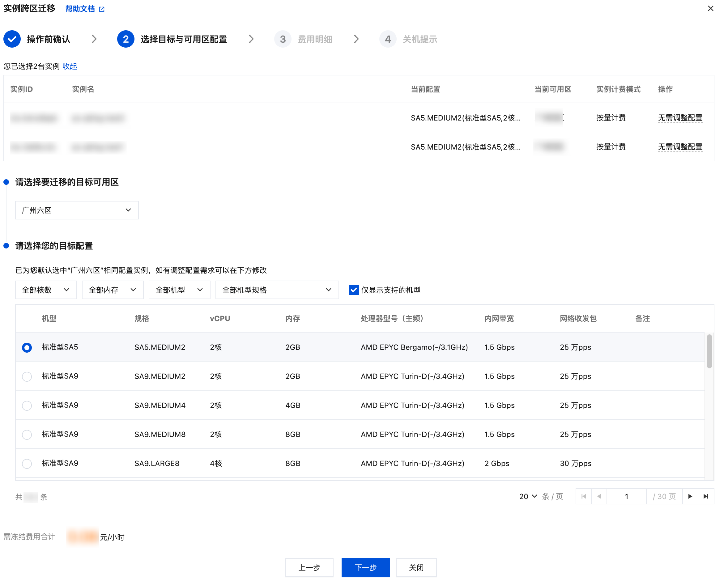 批量选择多可用区、多实例族(例如标准型、内存型、计算型)的实例不支持迁移,建议单次只选择同一可用区、同一实例族,再做迁移。