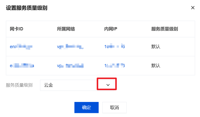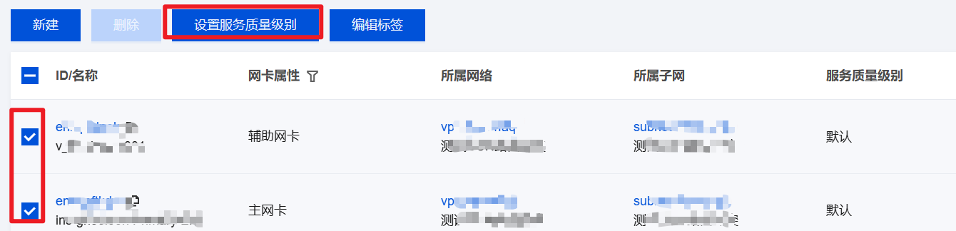 5. 如有多个弹性网卡需要设置为相同的服务质量级别,可勾选多个网卡,并单击上方的设置服务质量级别。