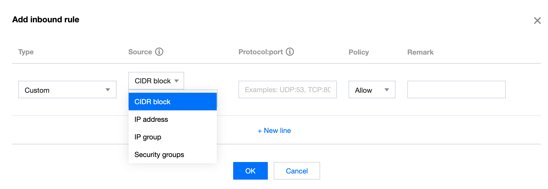 方式二:单击添加规则,适用于需要设置多种通信协议的场景,例如 ICMP 协议。