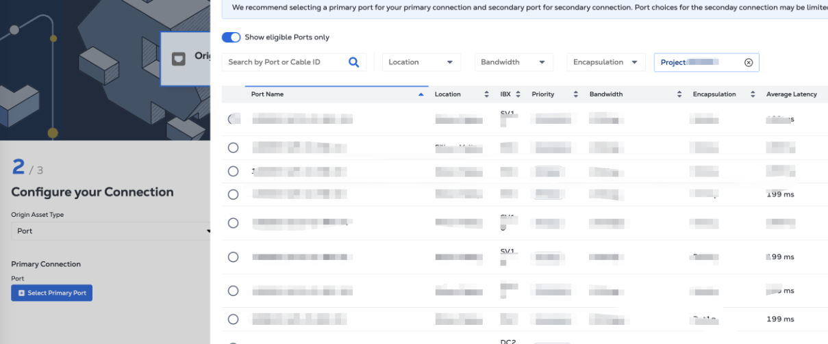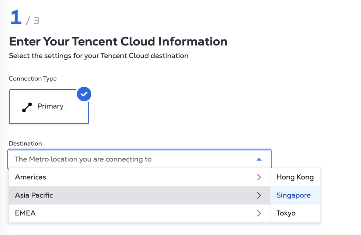 您的 equinix fabric 账号在需要建立连接的地域有 Port 或者 Virtual device。