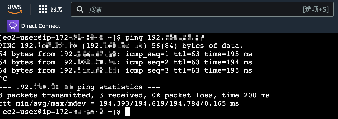 测试 Tencent 侧与 AWS 侧之间的连通性。