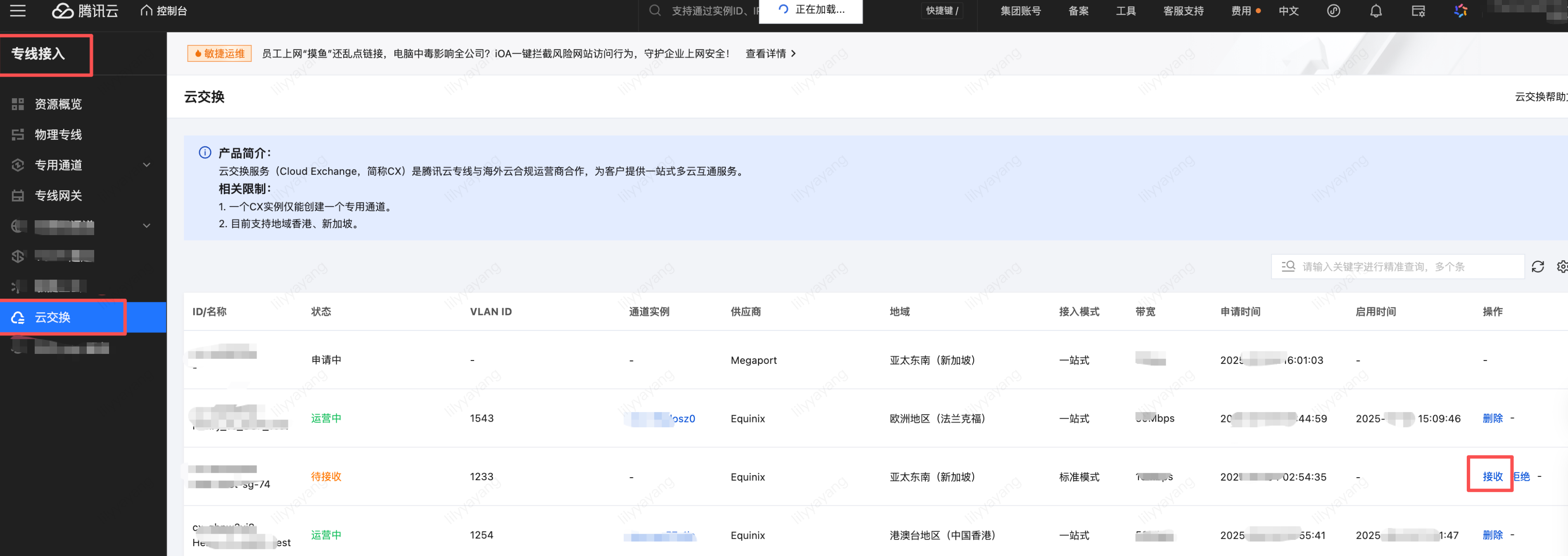 步骤1:控制台查看云交换信息