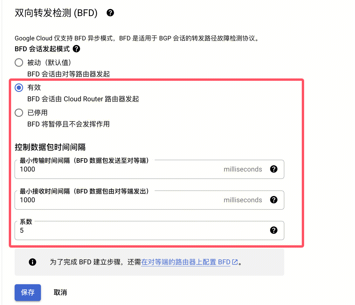 8.2 使能 BFD 会话并保存:完成 BFD 的开启和相关配置。