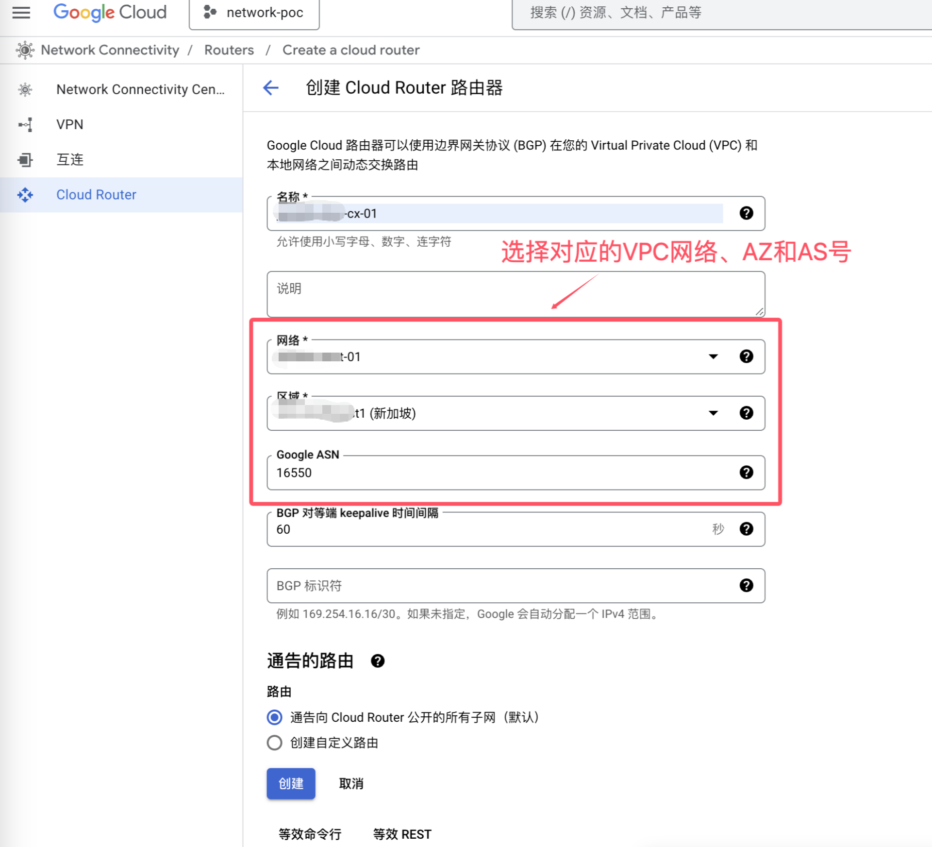 前置准备工作:需要客户谷歌云账号内有 Cloud Router 实例,如果没有则需创建新的 Cloud Router 实例。