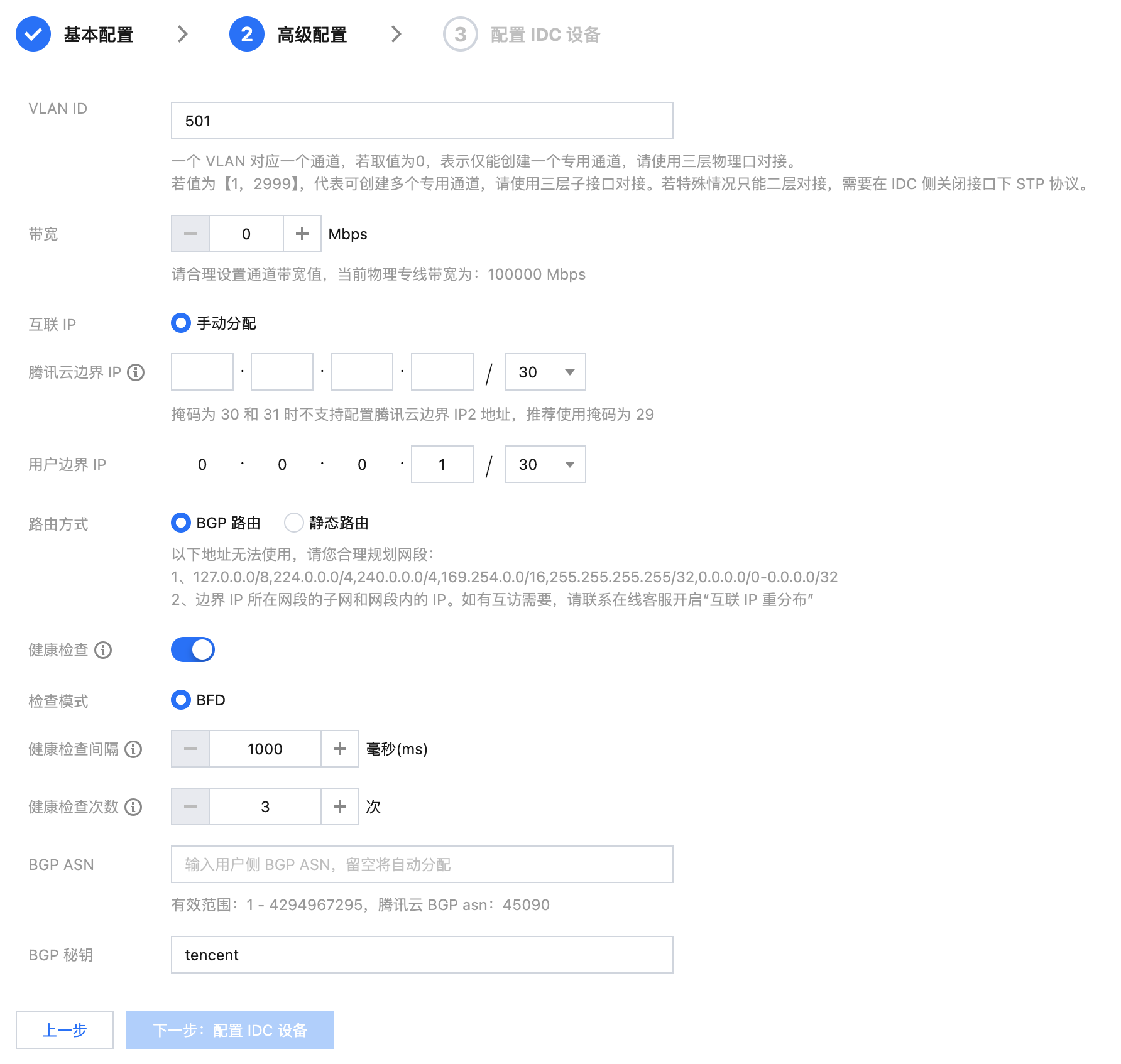 物理专线使用原来的,即 ID 为 dc-dqggvxad 的物理专线。