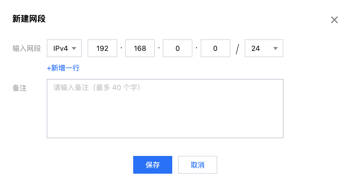 3.2 进入添加页面,输入 IDC 网段,本文以“192.168.0.0/24” 为例,单击保存。