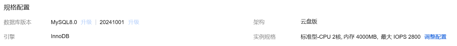 重启 | 调整的配置是否会重启实例,请以实际变配操作页面为准,部分操作如修改复制方式、增加只读节点等不涉及重启。 |
