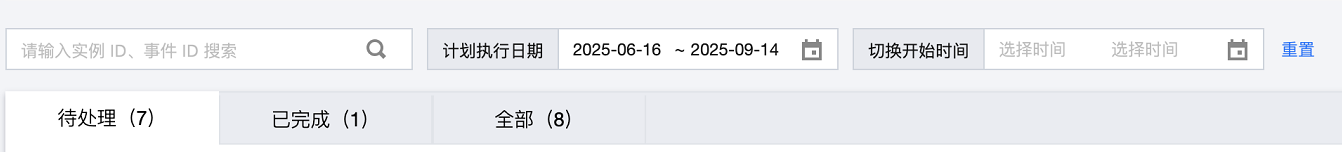 搜索框 | 您可以在搜索框内输入实例 ID 或事件 ID 进行快速过滤。 若要修改输入的实例 ID 或事件 ID,您可以单击您输入的实例 ID 或事件 ID 直接修改,修改完成后通过回车键结束修改。 不支持模糊匹配。 |