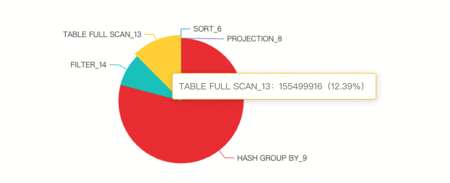 在分析 SQL 执行性能时,算子执行时间分布图提供了关键视角。您可以清晰看到每个算子消耗的 CPU 时间片占比。通过观察不同色块的面积大小,您可以直观定位到整个执行计划中最耗时的算子。