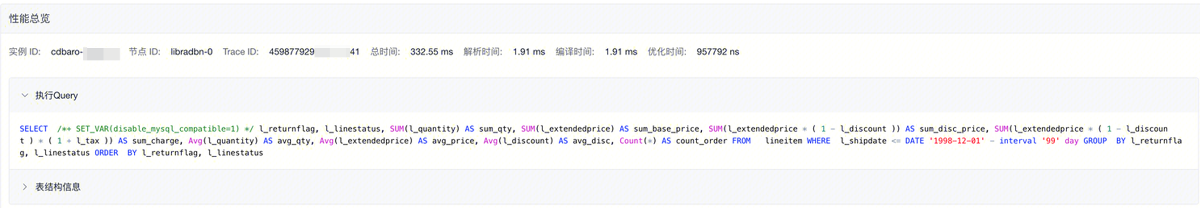 表结构信息:默认折叠显示,单击可展开本次查询涉及的所有表结构。
